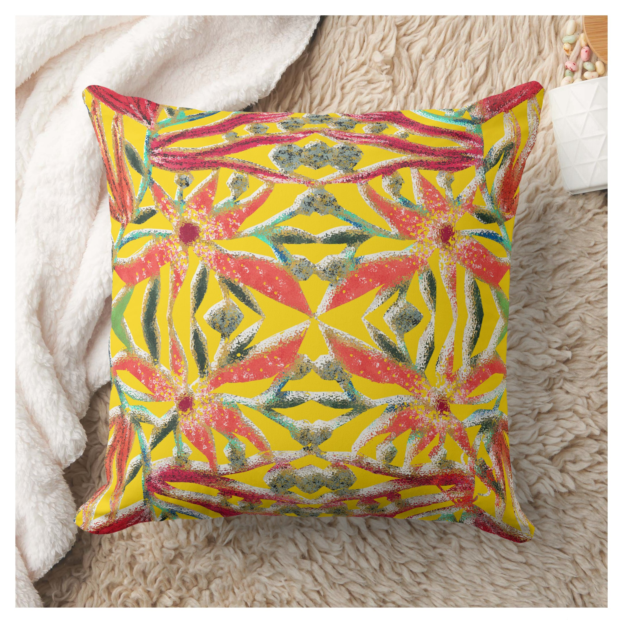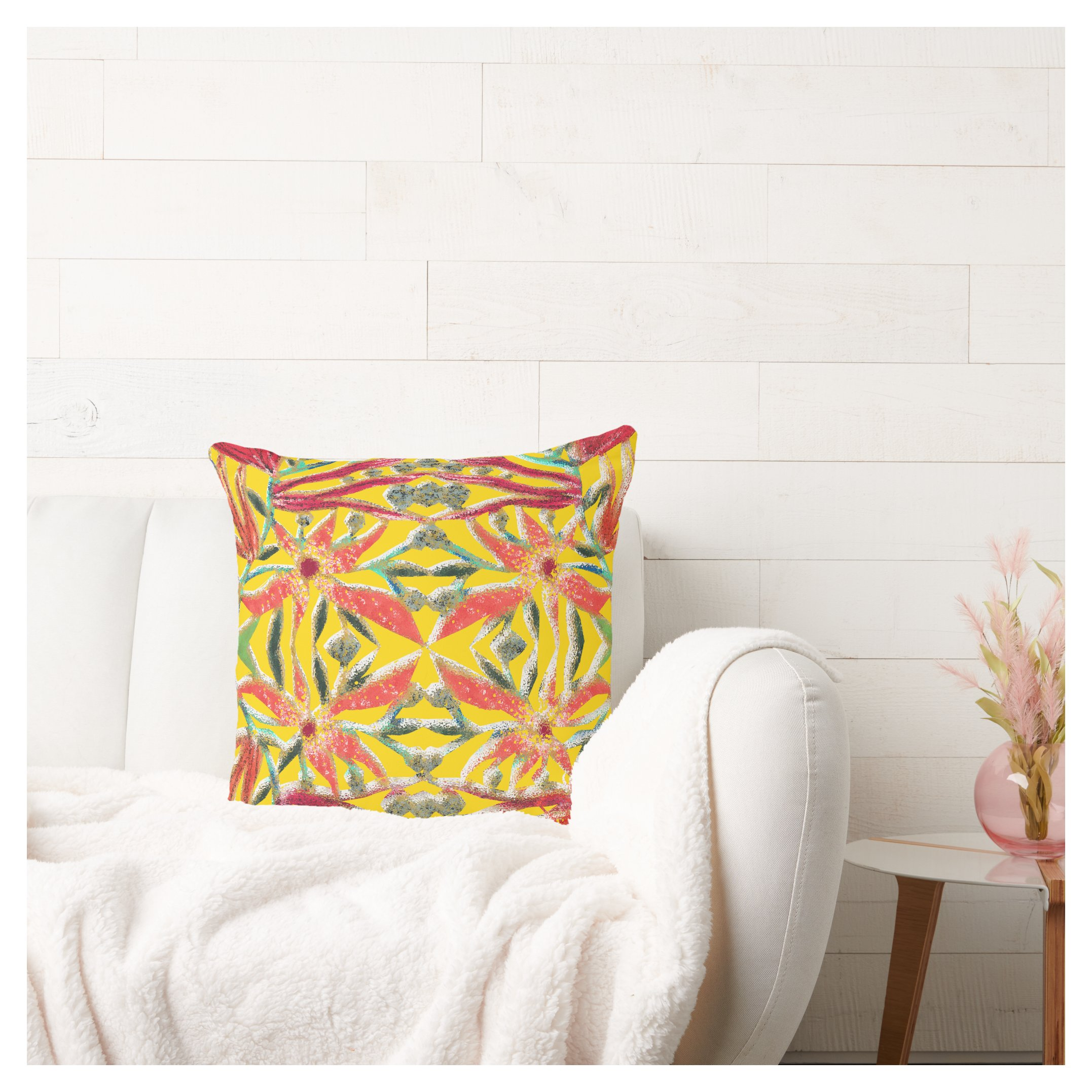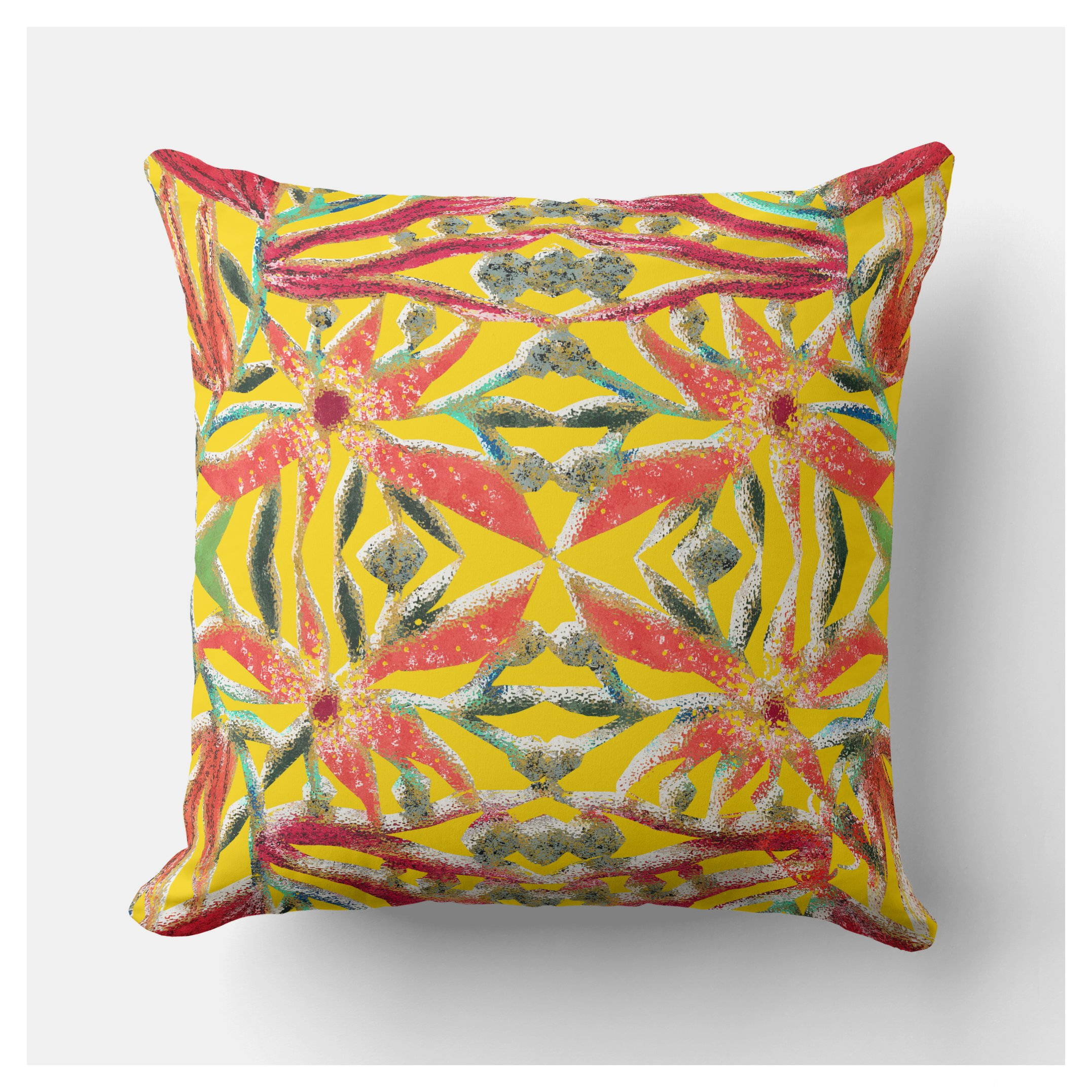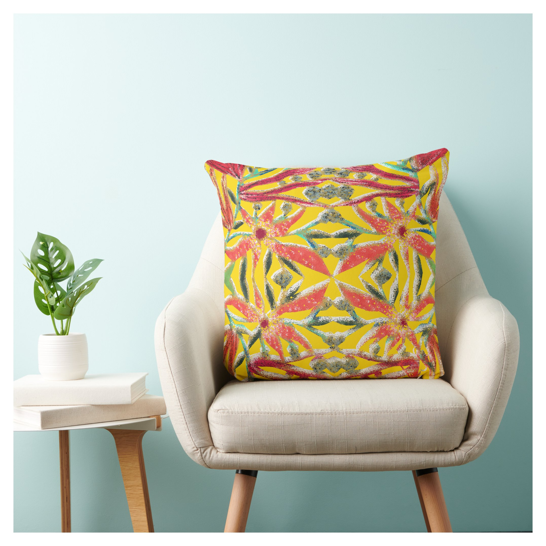 Ambientado en Flores IV con fondo amarillo material de poliestester con tacto suave y fino